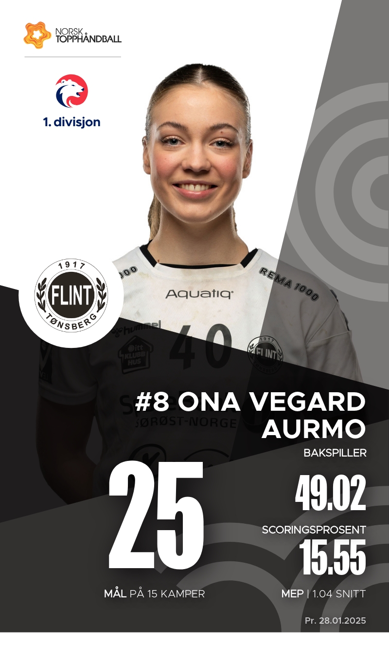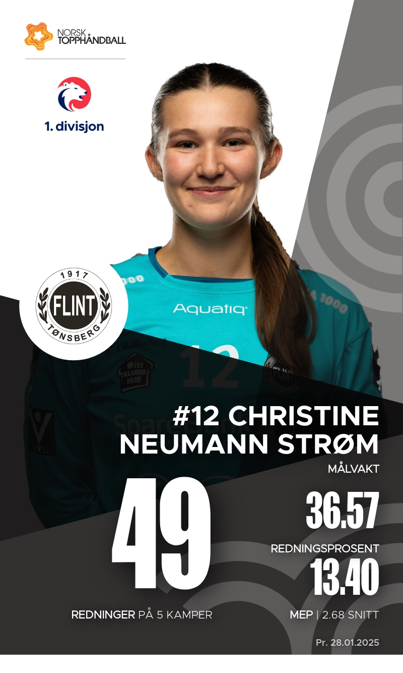 Flint har noen sterke spillere som har utmerket seg denne sesongen. Embla Eriksen er en av dem, med hele 74 mål og 61 assist, noe som gjør henne til en avgjørende spiller i angrepet. Hennes MEP på 3.2 viser at hun har hatt stor innvirkning i kampene. Ona Vegard Aurmo bidrar også sterkt med 25 mål og 44 assist, og har en like høy MEP som Eriksen. Christine Neumann Strøm har imponert som målvakt med 49 redninger og en MEP på 5.4, noe som understreker hennes betydning for laget. Flint har derfor et solid grunnlag for å konkurrere i 1. divisjon.