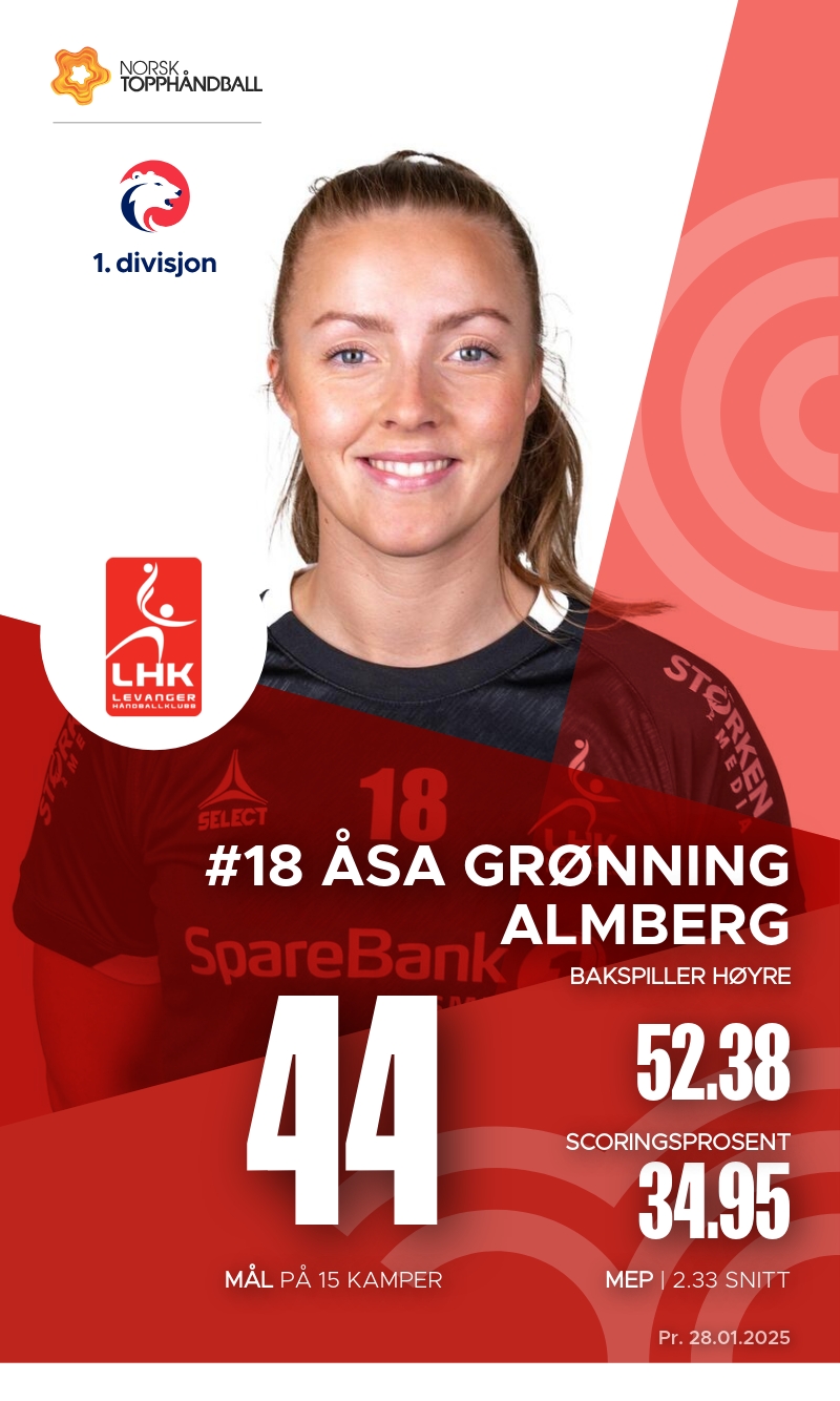 Levanger har flere nøkkelspillere som har vist seg å være avgjørende i sesongen så langt. Åsa Grønnning Almberg er en av de mest effektive med 44 mål og 59 assists, noe som gir henne en MEPP på 3.4. Hanne Olsvik har også bidratt sterkt med sine prestasjoner, og hun ble en viktig spiller i kampen mot Åsane. Torine Hjelme Dalen har scoret 38 mål og har vært en solid tilstedeværelse på banen. Disse spillerne har vært med på å sikre viktige seire, og deres innsats vil bli avgjørende i fortsettelsen av turneringen.